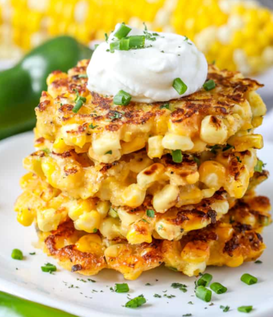 In a large sauté pan over medium-high heat, heat some vegetable oil. In large dollops, add the corn batter and sauté until golden brown, 3 to 4 minutes on each side. Remove to paper towels to drain. Cook in batches, adding oil as necessary. Serve with additional with sour cream seasoned with a squeeze of lime juice and minced cilantro or chives.
