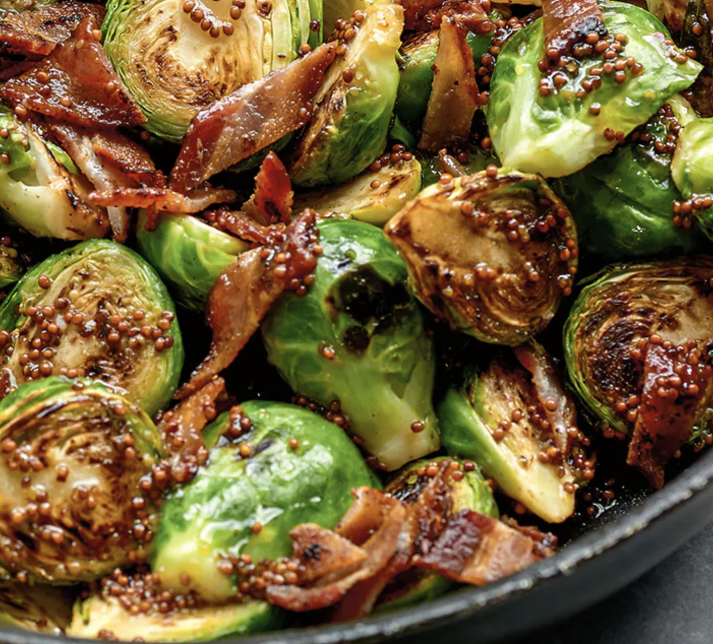 4. Stir in the bacon, season with salt and pepper, then taste and add more syrup or mustard, if needed. If you’d like a touch of acidity, add a splash of cider vinegar. Serve immediately. SO SO SO SO SO SO delicious!!! (If you like brussel sprouts).