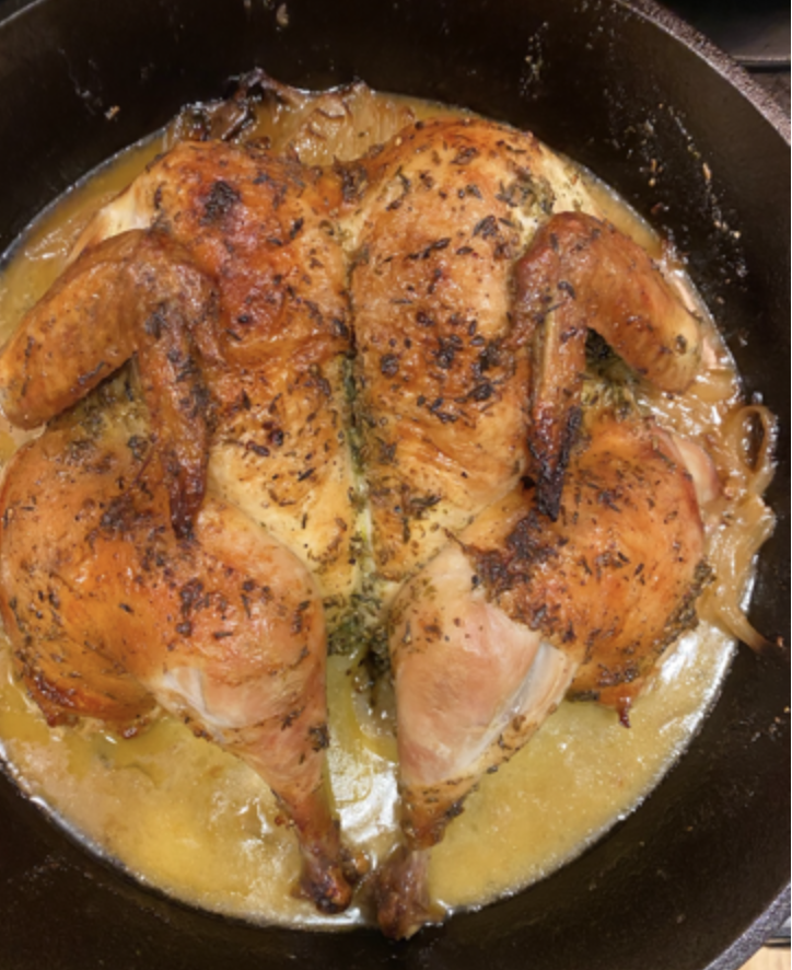 - 1 (4-pound) chicken, backbone removed and butterflied (your butcher will do this for you)