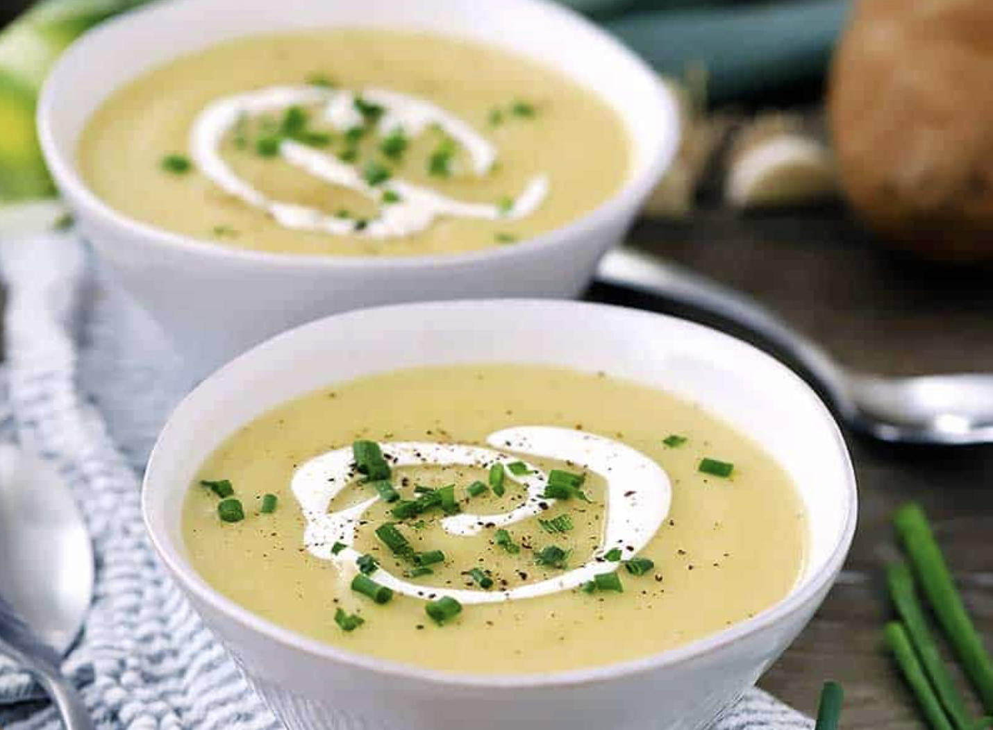 - Melt the butter in a large saucepan. Add the leeks and cook over low heat, stirring occasionally, until softened, about 8 minutes. Add the potato and chicken stock and bring to a boil. Cover partially and simmer over low heat until the potatoes are tender, about 15 minutes.