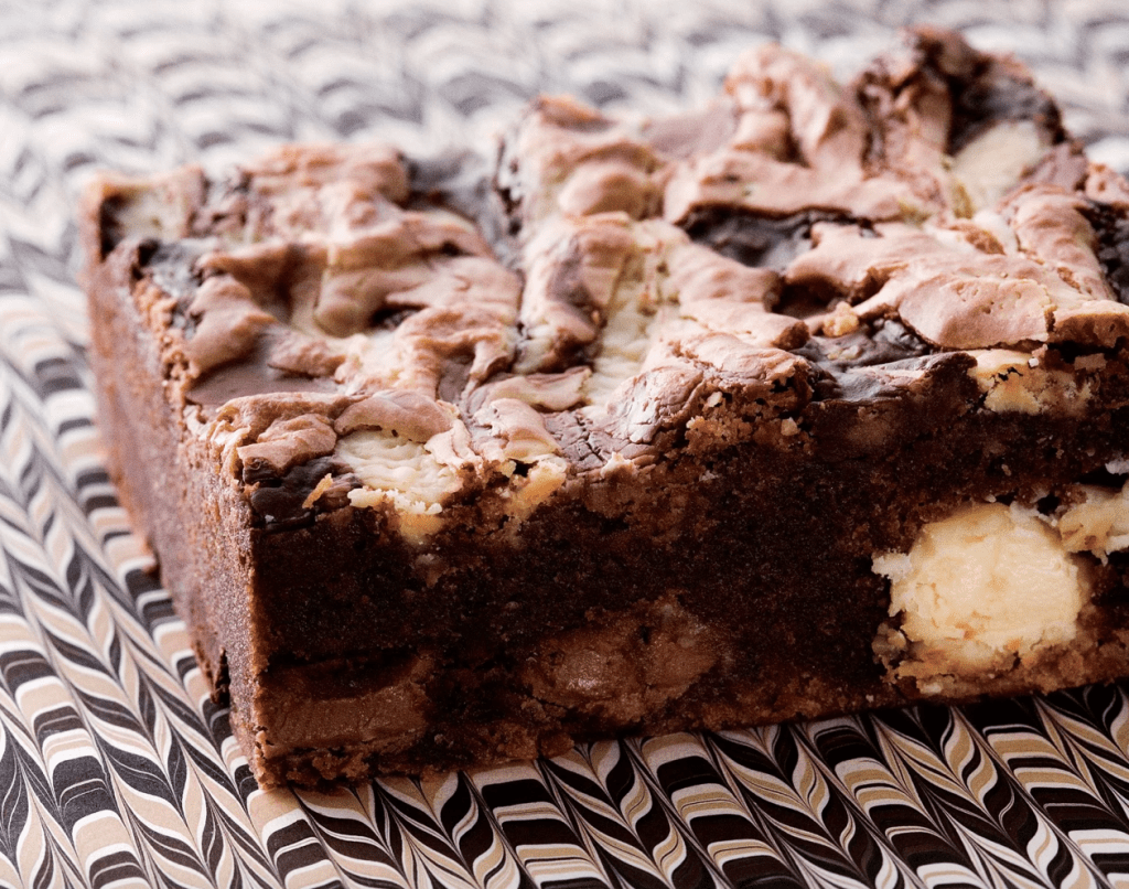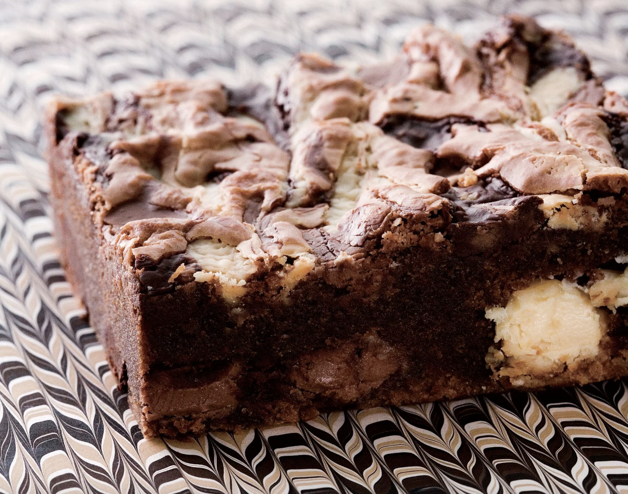 - Place the remaining chopped chocolates separately in 3 small microwave-safe bowls and melt. Using a spoon, drizzle the melted chocolates over the batter. Using a table knife, make swirls in the batter for a marbled effect. Bake the brownies for about 35 minutes, rotating the pans halfway through, until the tops are shiny and the brownies are set.
