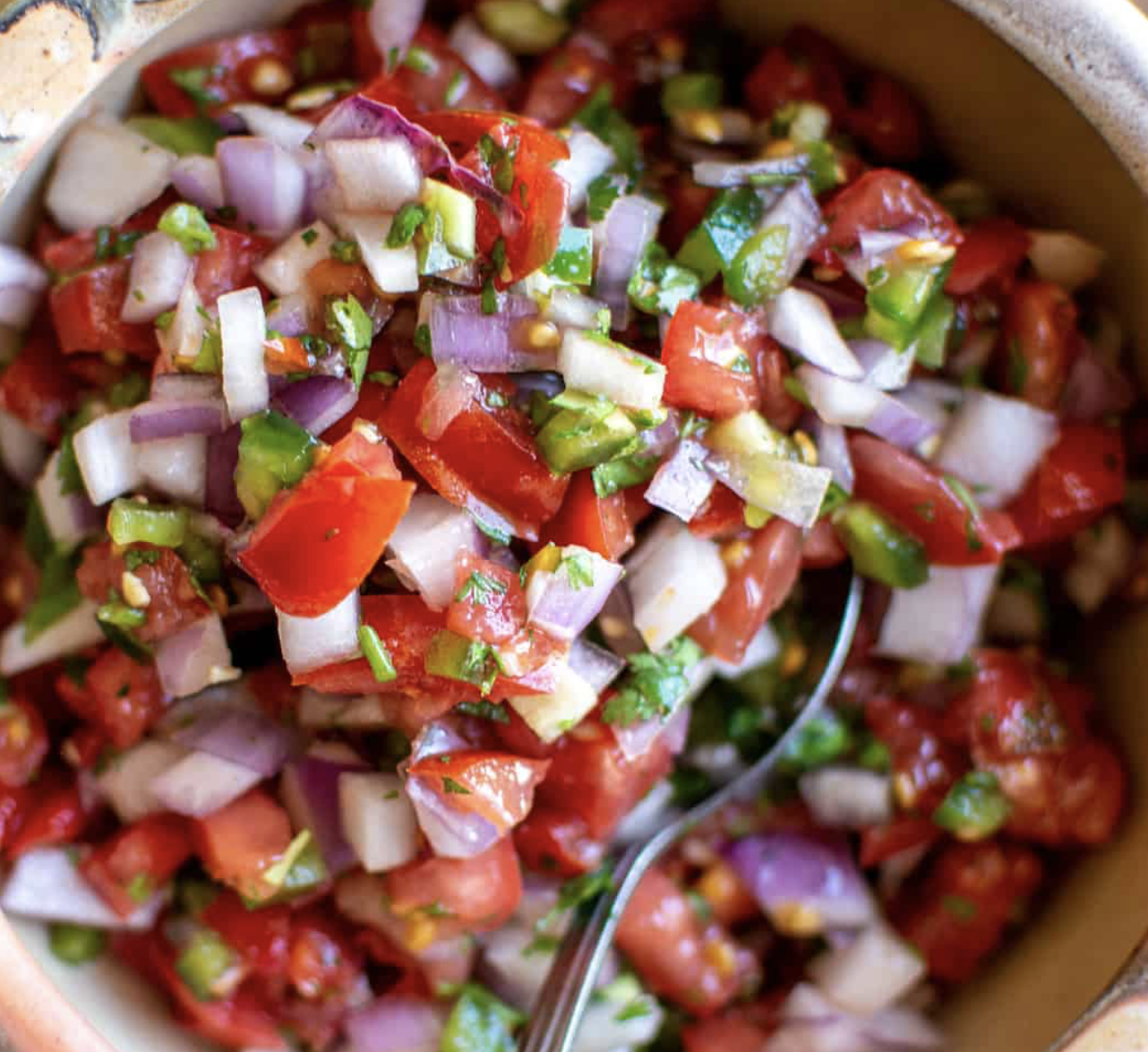 If you buy those flabby, pale, tasteless, imitation pico de gallos in the deli case at the grocery store, it’s time to come to the light! There is absolutely no reason to do this ever again in your life when you can make this vibrant, fresh, flavor-packed version to serve with chips, tacos, quesadillas and even pasta in just a handful of minutes. AND if you can score summer vine-ripened tomatoes, you are on your way to a transcendent experience!