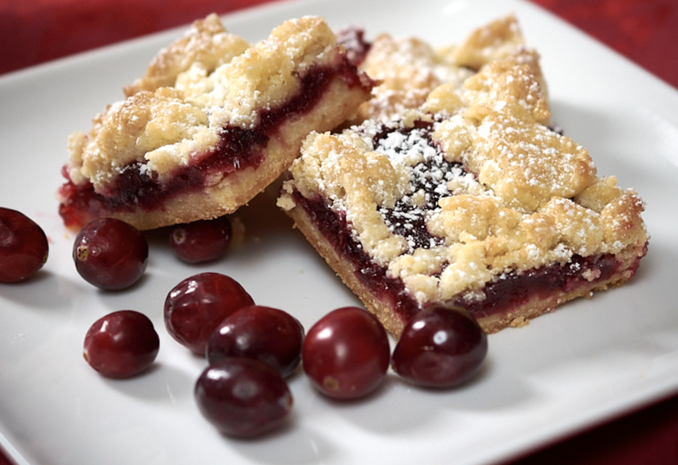 Spread the cranberry mixture evenly over the hot crust. Scatter the streusel over the cranberries. Don’t crumble the streusel too much or the texture will be sandy. Increase the oven temperature to 350 degrees and bake the bars near the top of the oven until the streusel is golden and set, about 25 minutes. Baking these bars at the top of the oven helps the streusel brown faster without over browning the crust.