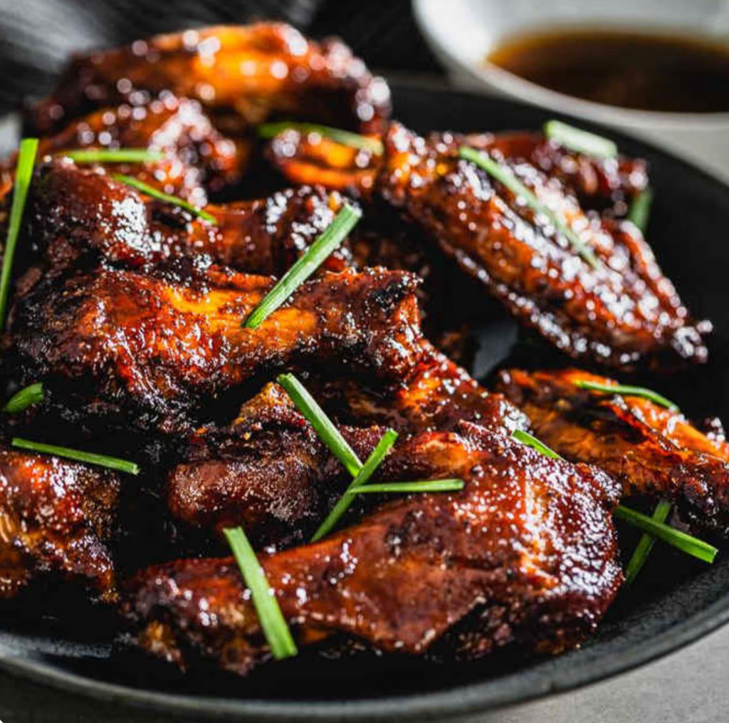 - Garnish and serve — sprinkle the glazed wings with the chopped green onions and sesame seeds.